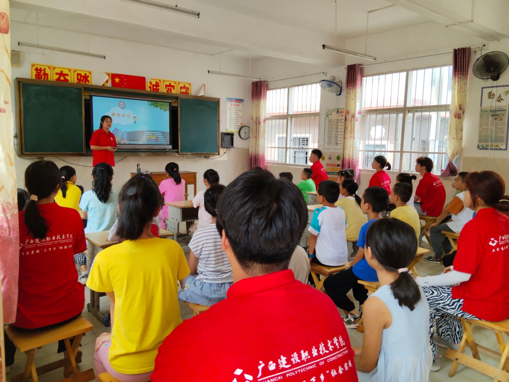 市政与交通学院7月15日讯(文:杨彩艺/图:何 艳)为增强学生交通安意识,伟德国际1946源于英国“检测同行”团队于2023年7月11日下午来到桂林阳朔县金宝乡红莲小学,开展了一场别开生面的“交通安全小课堂”专题活动。