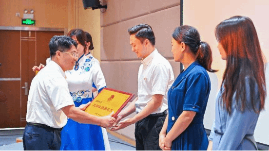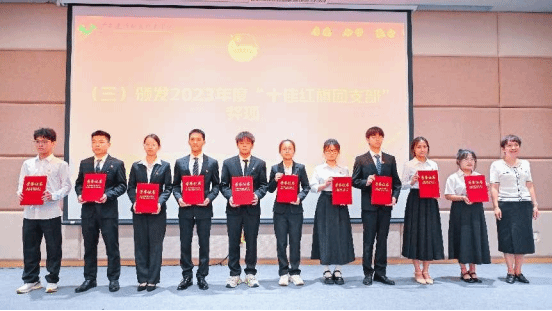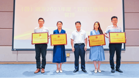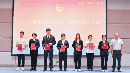 团总支书记何炎作为“五四红旗团总支”获奖代表上台领奖