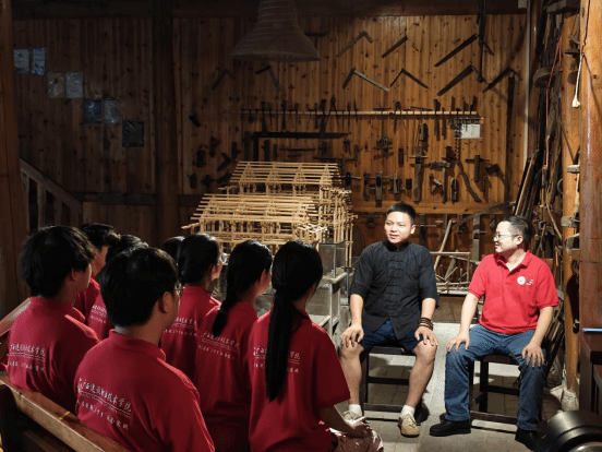 此外,实践团还与广西城镇建设杂志社共同专访了杨云东师傅。杨师傅表示,学习木构建筑营造技艺需要耐心和毅力,他从小跟随父辈学习,通过不断实践和摸索,逐渐掌握了这门技艺。在传承过程中,他注重技艺的传承与创新,将传统技艺与现代技术相结合,使木构建筑在保持传统特色的同时,更加符合现代人居理念和审美需求。