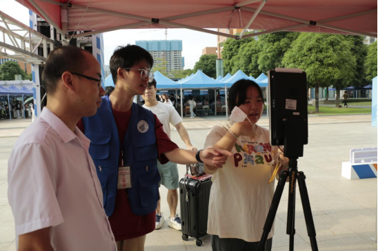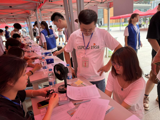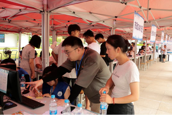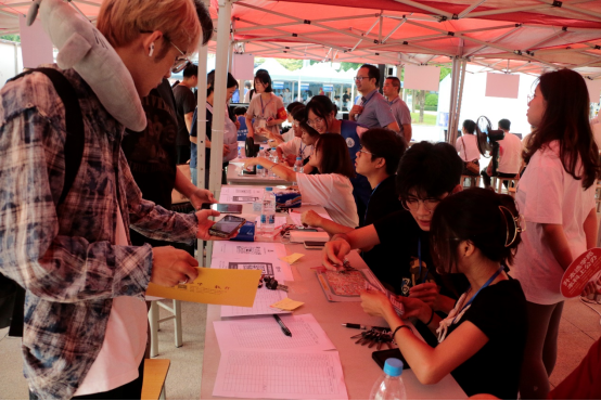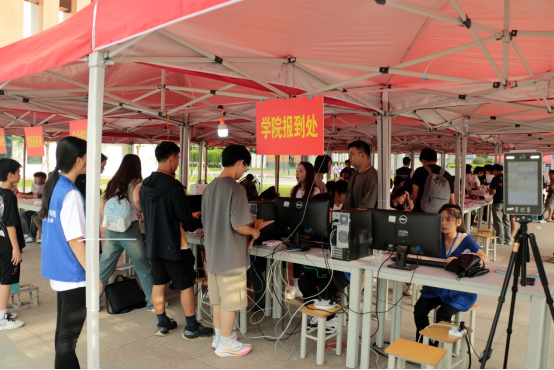在大本营内,24级新生在老师和志愿者们井然有序的带领下的完成人脸识别、现场报到、分配宿舍、领取爱心礼包等一系列手续。为了帮助新生快速了解所学专业和学院特色,我院还设有专业解答处,由专任教师代表为新生解答专业相关方面的问题。