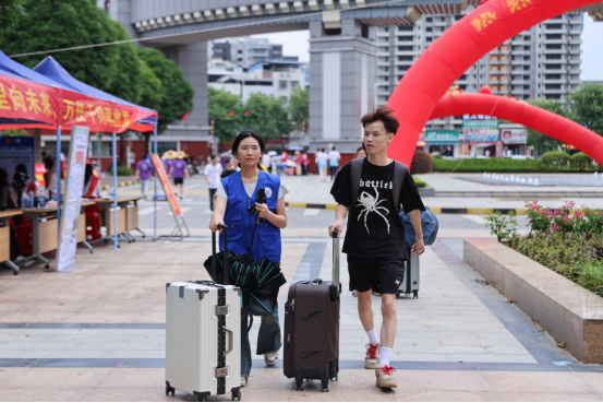 新生现场报到完成后,学生志愿者主动协助搬运行李,引导新生前往指定宿舍,一路上,志愿者们还热情地给新生们介绍着学校的基本情况。