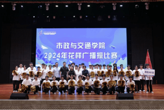 (市政与交通学院10月22日讯 刘晗蕾)为全面践行“五育并举”,丰富校园文化生活,增强学生体质,激发学生运动兴趣,激发学生积极向上的精神风貌,培养学生的班级凝聚力和集体荣誉感。10月22日,市政与交通学院在学校礼堂举行花样广播操选拔赛,2024级11个新生班级在赛前都进行了充分的准备,在选曲、编舞、操练等各方面都下足了功夫,比赛现场精彩纷呈。同学们身穿统一的班服,随着音乐响起,他们整齐划一地伸展、踢腿、弯腰、跳跃,每一个动作都刚劲有力,每一个节拍都准确无误。他们用青春的活力诠释着花样广播操的魅力,标准的姿势、专注的神情,洋溢着的笑容,如同初升的朝阳,朝气蓬勃。这场花样广播操选拔赛,不仅是同学们青春风采的完美展现,更是班级凝聚力的直观体现。