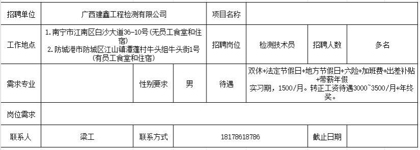 【招聘】广西建鑫工程检测有限公司