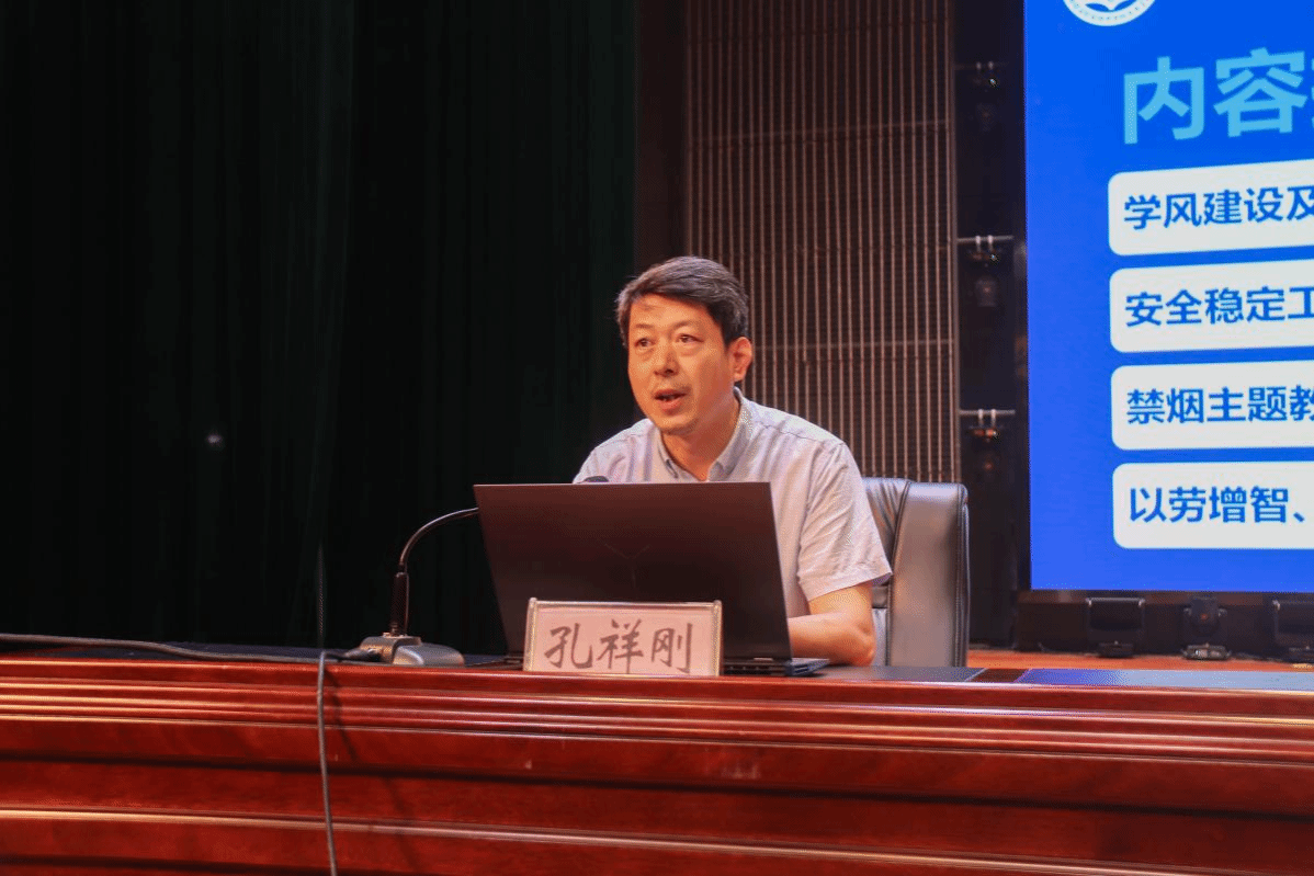 学院党总支书记孔祥刚对2024级新生的到来表示热烈欢迎。他围绕学风建设及宿舍文化、安全稳定工作、禁烟主题教育、素质提升四个方面对新生开展入学教育,引导新生们努力成为有理想、有道德、有文化、有纪律的社会主义合格建设者和接班人。