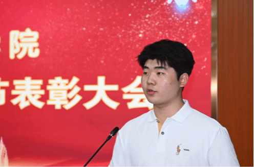 优秀宿舍长代表骆靖坤分享优秀宿舍创建心得,他围绕宿舍制度建设、安全规范管理、文化氛围营造、团队协作活动四个维度展开阐述。最后,他呼吁同学们重视宿舍安全文明建设,携手营造温馨舒适、积极向上的宿舍环境,让宿舍真正成为青春成长的温暖港湾。