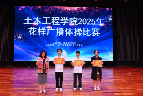 (土木工程学院讯 文/石明成 申薇 图/赵子丞)近日,土木工程学院2025级新生花样广播体操比赛在学校礼堂顺利举行。学院团总支书记冯光帆、全体辅导员出席活动,2025级全体新生以班级为单位踊跃参赛,以青春活力与创新编排展现出新时代大学生的蓬勃风采。