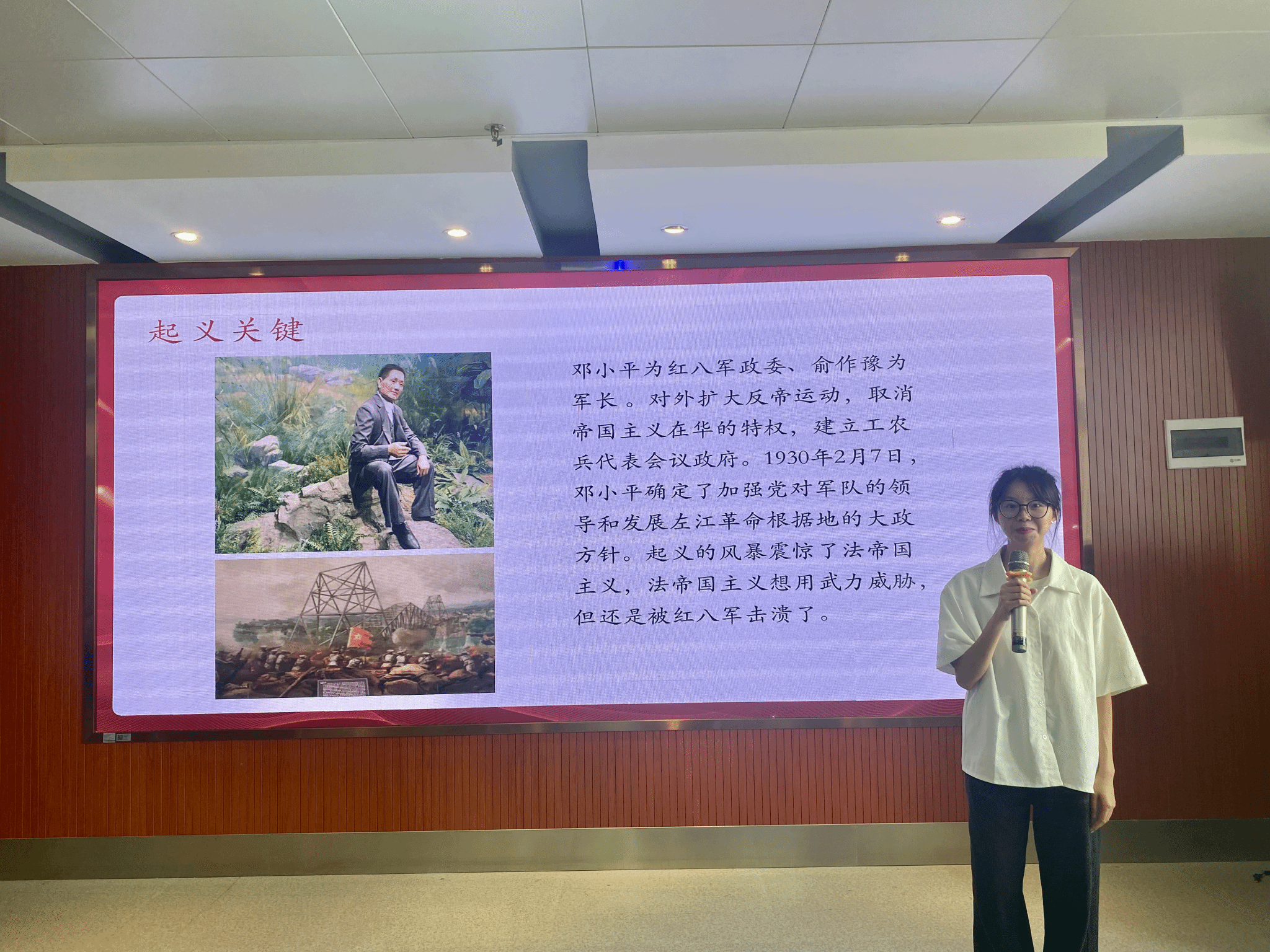 通过观看《龙州起义:红旗漫卷 风雷激荡》红色视频,带领与会人员了解了龙州起义以及红八军战士们不畏艰险、浴血奋战的英雄事迹。