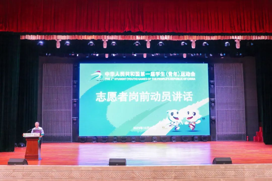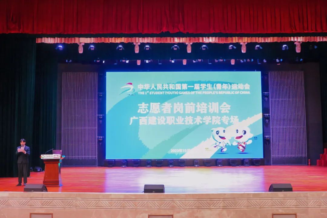 【青年新媒体中心报道】(文/蒋婉莹 麦旭 图/刘雯静 李彤 谭贞豪)为使伟德国际官网青年志愿者能够以最饱满的精神状态投身服务岗位,切实增强志愿者的服务意识、服务水平、服务能力。伟德国际官网团委于10月19日晚20时在学校礼堂召开第一届全国学生(青年)运动会志愿者岗前培训会。校团委书记曾小贵、校团委副书记黄秀薇老师出席本次培训会。校团委全体专职团干,二级学院志愿者指导老师,以及全体青年志愿者参加培训会。