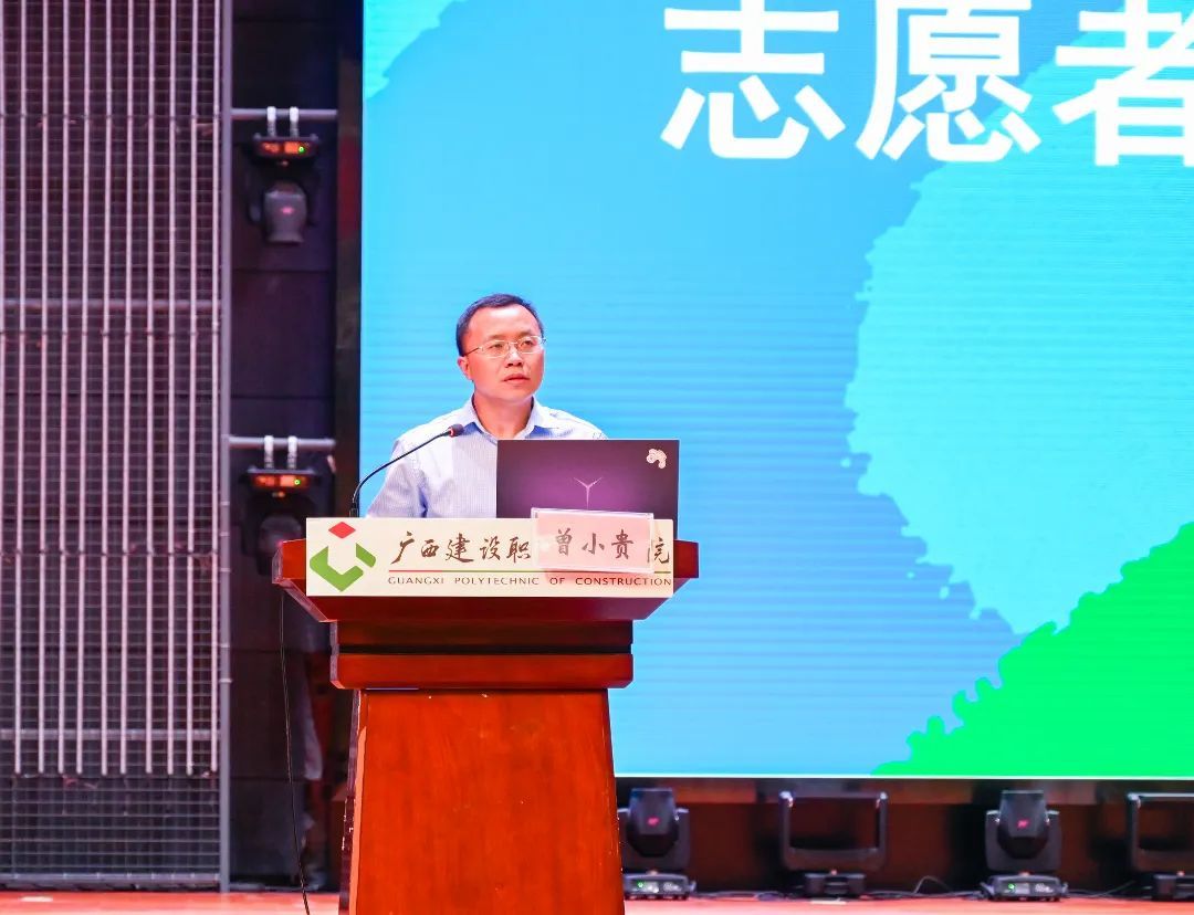 曾小贵书记指出第一届全国学生(青年)运动会是广西承办的第一个竞技类全国综合性运动会,伟德国际官网作为唯一一所协办两项公开赛事(跆拳道、举重)的高校,使命光荣、任务艰巨。学校举全校之力营造具有伟德国际1946源于英国特色的青春赛场,志愿服务工作正是其中关键一环,建院青年志愿者应当秉承“奉献、友爱、互助、进步”的理念,在志愿服务的实践中增长技能,收获成长。最后他呼吁全体青年志愿者要以最饱满的热情、最灿烂的笑容、最周到的服务,彰显建院志愿者的青春风采。