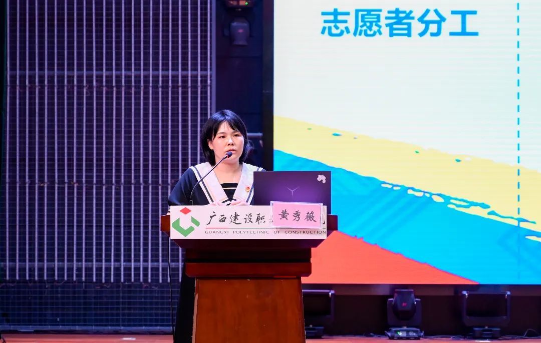 黄秀薇副书记围绕第一届全国学生(青年)运动会的活动背景、活动任务及注意事项三个方面进行了讲解,她提到志愿服务工作任务艰巨、责任重大,志愿者们务必要以饱满的热情、专业的素养和无私的奉献精神,为参赛选手提供最专业的服务。她强调志愿者们务必要严谨细致处理好工作时间及学业时间的安排,确保各项保障服务顺利推进。