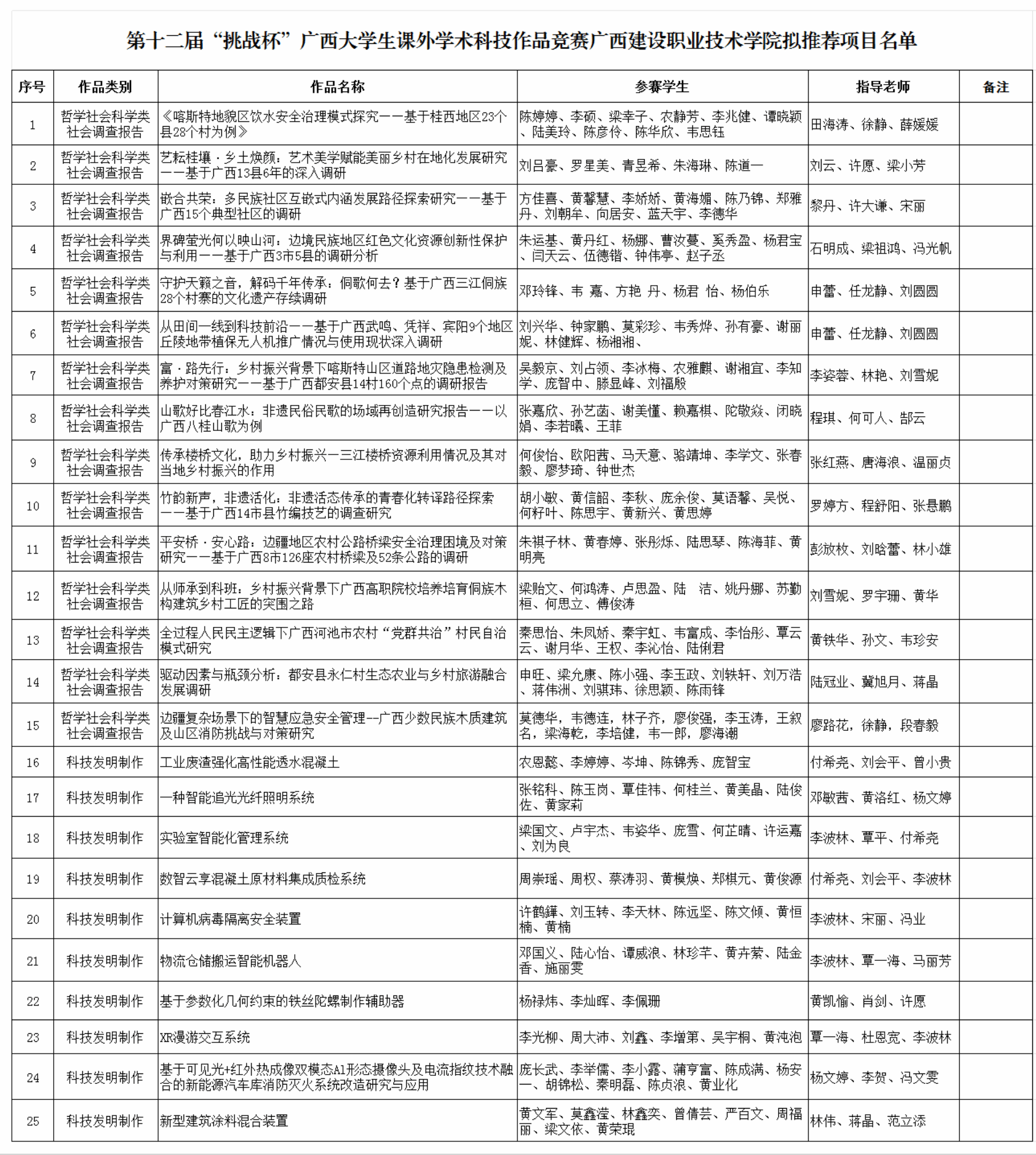 附件:第十二届“挑战杯”广西大学生课外学术科技作品竞赛伟德国际1946源于英国拟推荐项目名单
