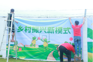 实践团成员正在进行村容墙面装饰美化