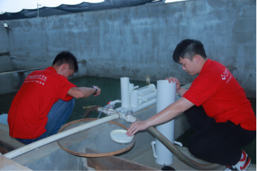 实践团成员为龟池安装水循环系统