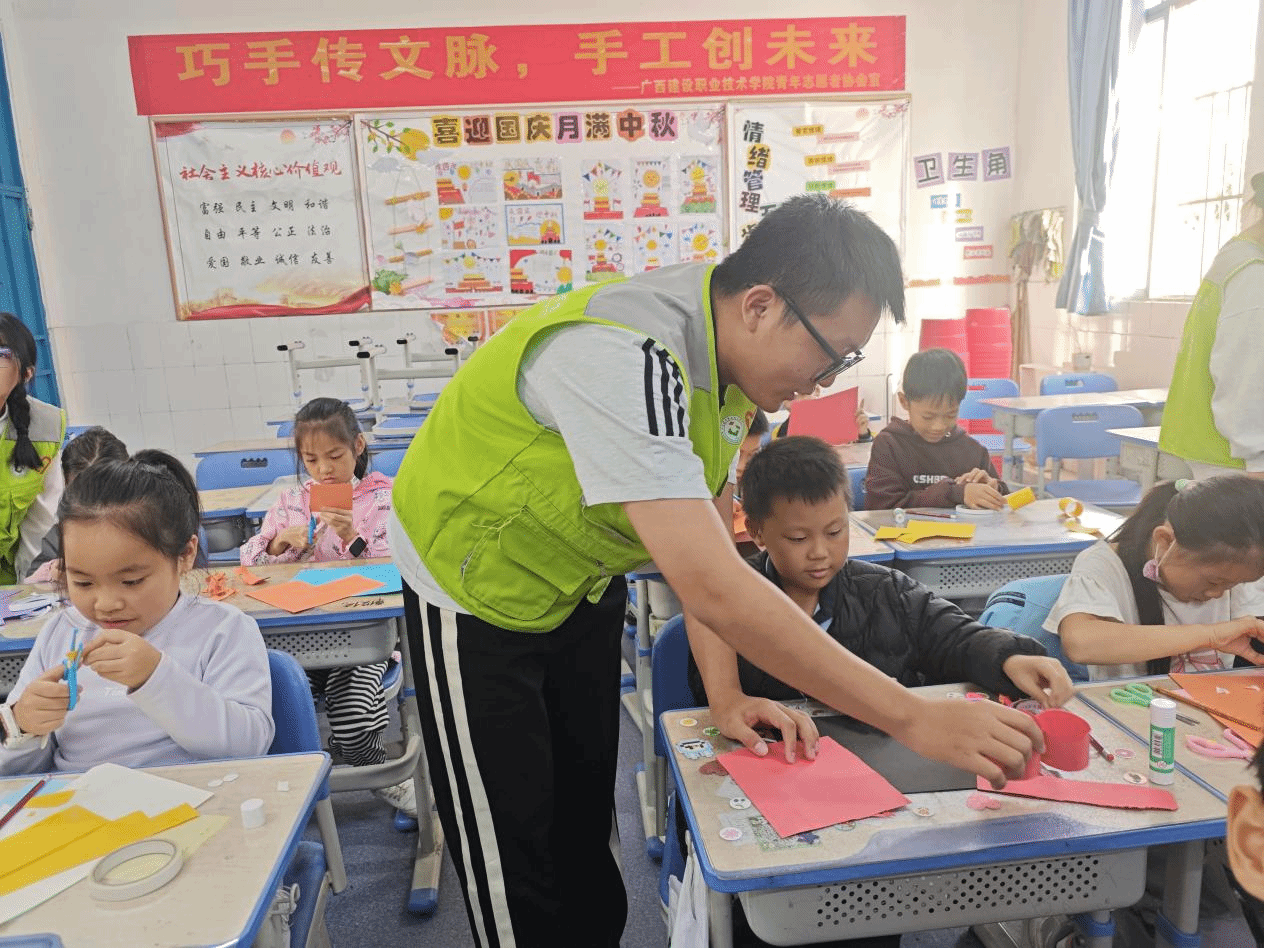 指尖折韵传文脉,志愿聚力暖童心。学校团委组织青年志愿者协会联合南宁市同心源社会工作服务中心,在南宁市兴宁中学开展两期手工折纸志愿服务活动,聚焦3-5年级青少年重点群体,以文化普及与动手实践为核心赋能成长。活动通过热身游戏、折纸文化小课堂、分组实践、作品展示等丰富环节,既让青少年在趣味实践中感受传统艺术魅力,锻炼动手能力、逻辑思维与沟通表达能力,也为志愿者搭建了提升服务水平与责任意识的实践平台。活动累计75人参与,服务青少年50人次,25名志愿者全程提供专业指导并严格落实安全保障,有序推进志愿服务落地,切实响应了重点群体帮扶与基层治理志愿服务的相关要求。