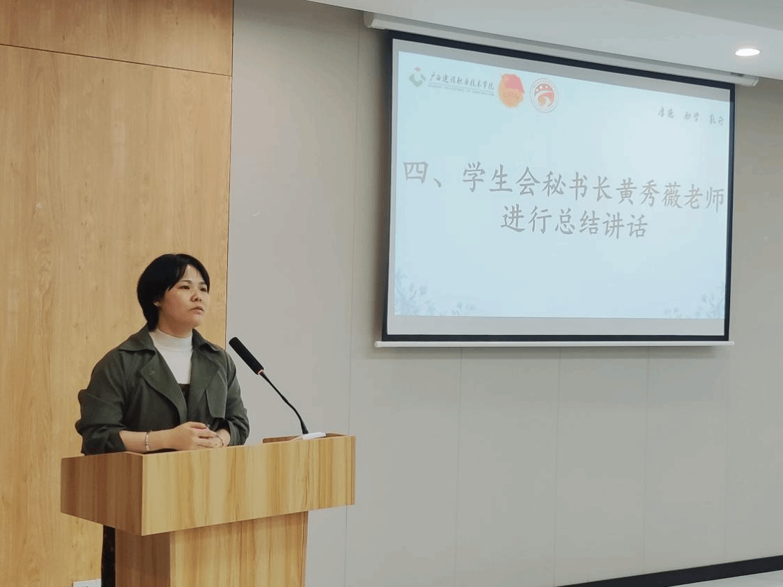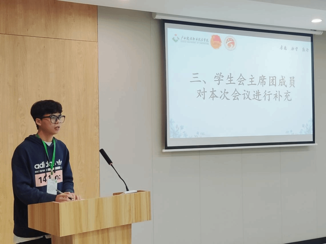 会议首先听取各部门代表作上个月工作情况汇报,随后轮值主席方于杰同学总结近期工作中存在的不足并提出整改意见,最后黄秀薇副书记做总结讲话,她强调学生会各部门之间需要增加有效沟通、进一步提高配合默契度,学生干部个人要强化责任意识,努力提升自身工作以及管理能力。最后,网宣部和文体部在会上就即将开展的“三人板鞋”体验活动和班级拔河比赛做方案讲解和志愿者招募。