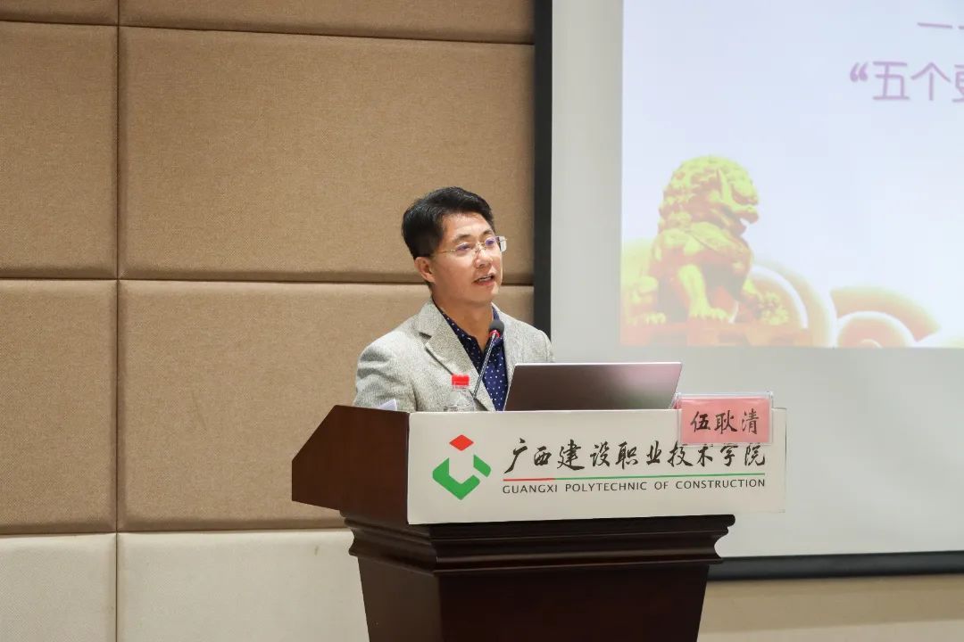 伍耿清副校长重点强调了习近平总书记对广西发展提出的“五个更大”重要要求,即在推动边疆民族地区高质量发展上展现更大作为,在服务和融入新发展格局上取得更大突破,在推动绿色发展上实现更大进展,在维护国家安全上作出更大贡献,在推进全面从严治党上取得更大成效。他指出,“五个更大”是一个内在统一的有机整体,充分彰显了广西在全面建设社会主义现代化国家新征程中的地位和作用。这既是对广西以往工作的充分肯定,也是对今后发展的有力鞭策,是建设新时代壮美广西最持久最强劲的动力。