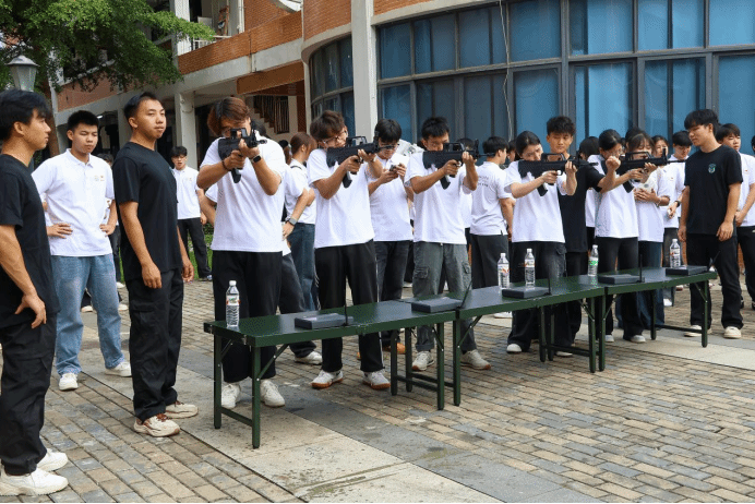 “青马工程”骨干班学员在学校国防教育工作室训练场体验激光模拟射击