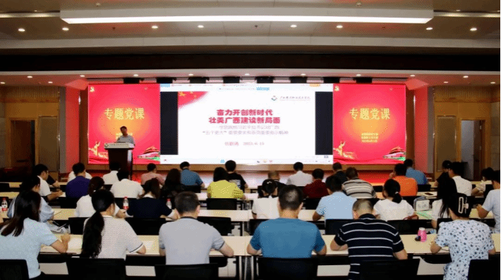 为深入学习贯彻习近平新时代中国特色社会主义思想,6月16日下午,伍耿清副校长以《奋力开创新时代壮美广西建设新局面》为题,在四教二楼报告厅为学校直属第四、第五党支部全体党员上党课。