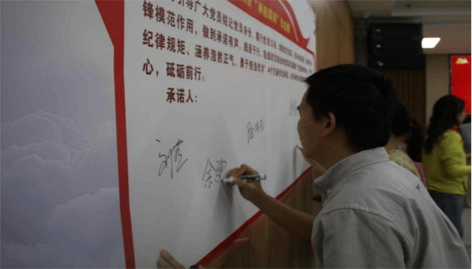 最后,支部开展党员“承诺践诺”活动,组织全体党员同志围绕“坚定维护核心、严守纪律规矩、涵养浩然正气、勇于担当作为”4个方面作出承诺,在承诺签名墙上签名,以此引导广大党员铭记党员身份,履行党员义务,增强党员意识,带头承诺践诺,发挥好先锋模范作用,传承伟大建党精神,永葆初心,砥砺前行。