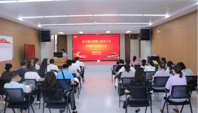 7月3日,直属第四党支部在学校党建思政教育基地召开党风廉政暨师德师风建设大会,会议由支部副书记黄秀薇同志主持,支部全体党员,学工部、团委全体非党员教职工参加本次活动。