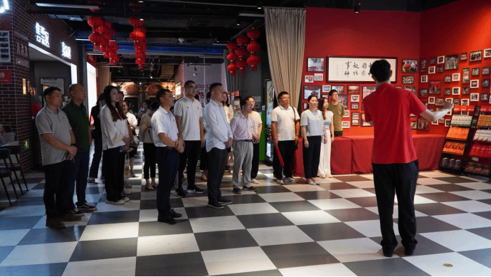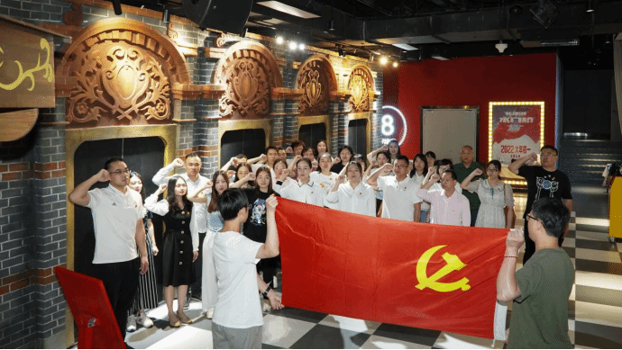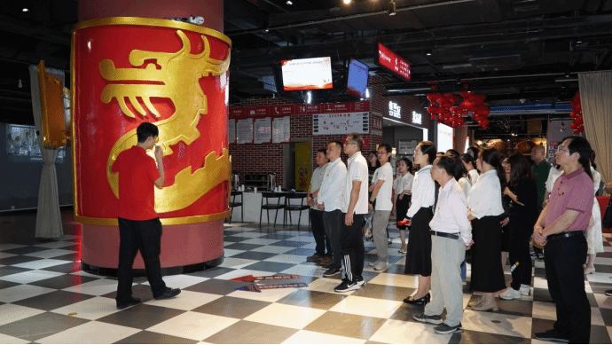 在工作人员的带领下,大家首先来到了“铸牢中华民族团结共同体意识”主题展区,依次参观了“龙标民族团结之柱”“红船起航”“看电影学党史”“电影里的民族画卷”“爱我中华”等特色场景。随后,全体人员在支部副书记杨海基同志的带领下,在“红船起航”处重温了入党誓词。最后集中观看了根据真实事件“三千孤儿入内蒙”改编的民族团结电影《海的尽头是草原》。