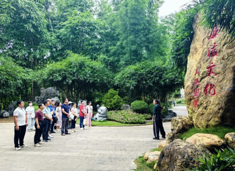 在讲解员的带领下,同志们走进竹园廉洁文化园,实地参观了“颂竹”“品竹”“知竹”“听竹”四个区域。讲解员将廉洁文化与山水园林有机融合,通过讲述园内为官清廉的名人雕塑、中国古代清官浮雕墙、咏竹诗词石刻墙绘、廉政楹联等内容,为在场党员同志们上了一堂生动且富有精神内涵的“清廉”主题党课。