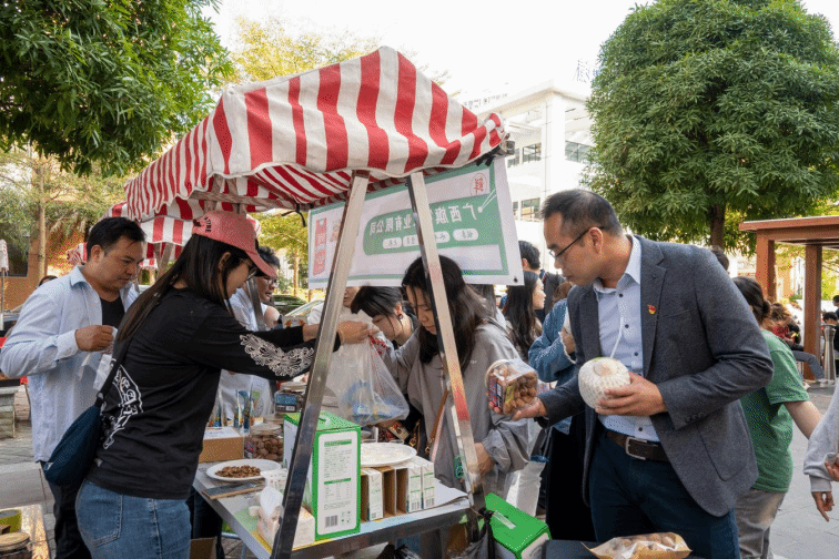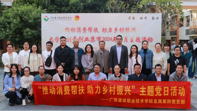 为学习贯彻党的二十届三中全会精神,落实上级党委关于巩固拓展脱贫攻坚成果同乡村振兴有效衔接的决策部署,充分发挥党员在消费助农、志愿服务等方面的先锋模范作用,在师生群体中宣传推广乡村特色产品,帮助乡村地区的特色农产品、手工艺品等打开校园市场,解决农产品销售难的问题,11月22日下午,直属第四党支部组织支部全体党员同志、学工团委非党员教职工,前往学校创新创业一条街,开展“推动消费帮扶 助力乡村振兴”主题党日活动。