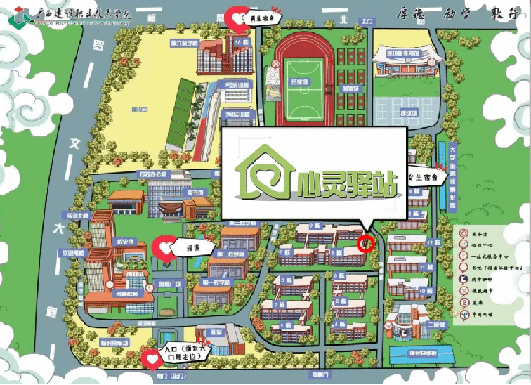 学生社区心灵驿站楼下(四公寓门厅对面,8、9 栋学生公寓东侧)