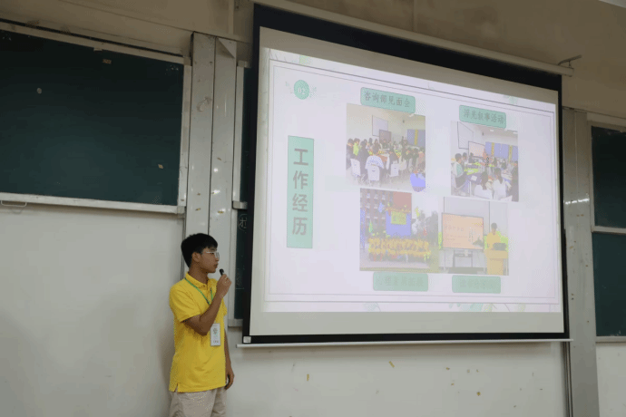 讲台上,各部门候选“小草”井然有序的上台,他们展示精心准备的PPT,分别从自我介绍、个人经历、岗位认知、未来展望等方面演讲答辩;讲台下,老师们和学长学姐适时提问,引导候选“小草”用心思考,在作答中合理自我剖析,总结工作经验,进一步展现个人风采和能力素养。