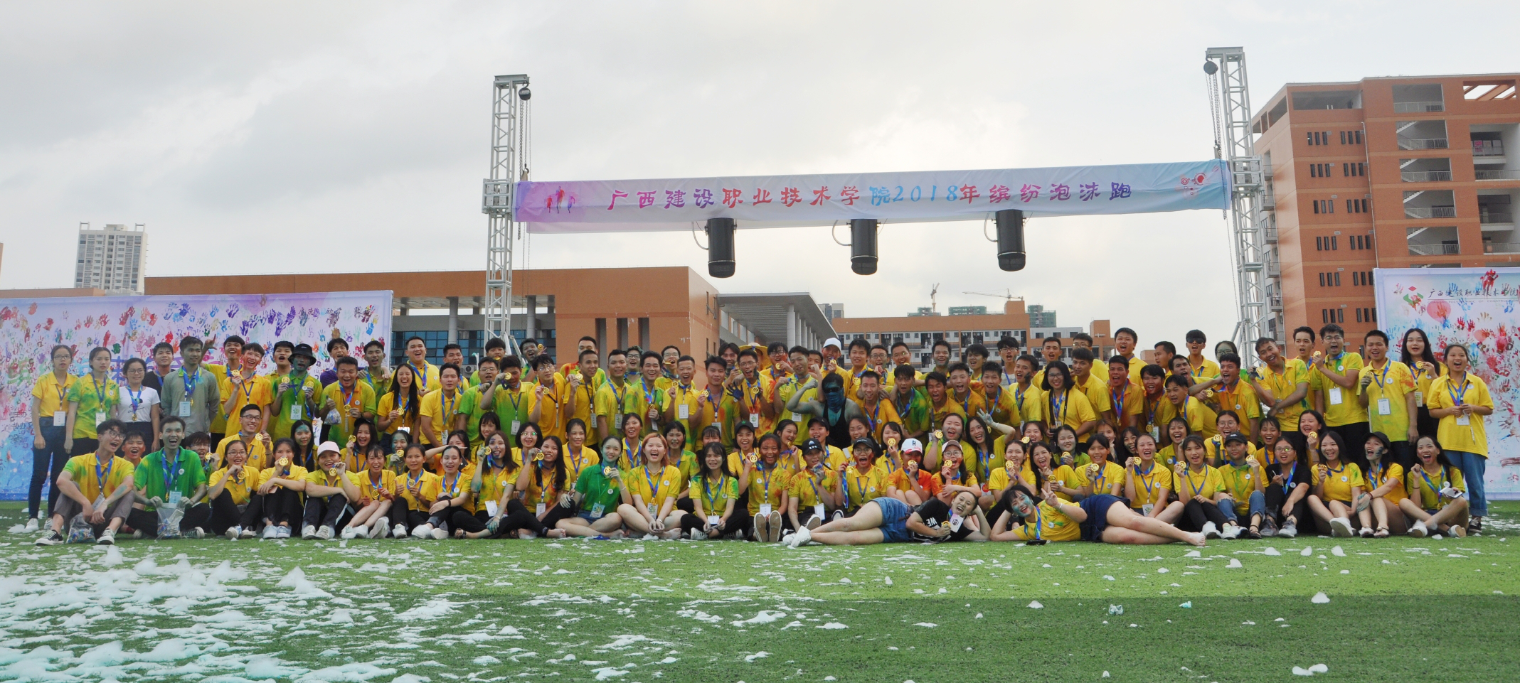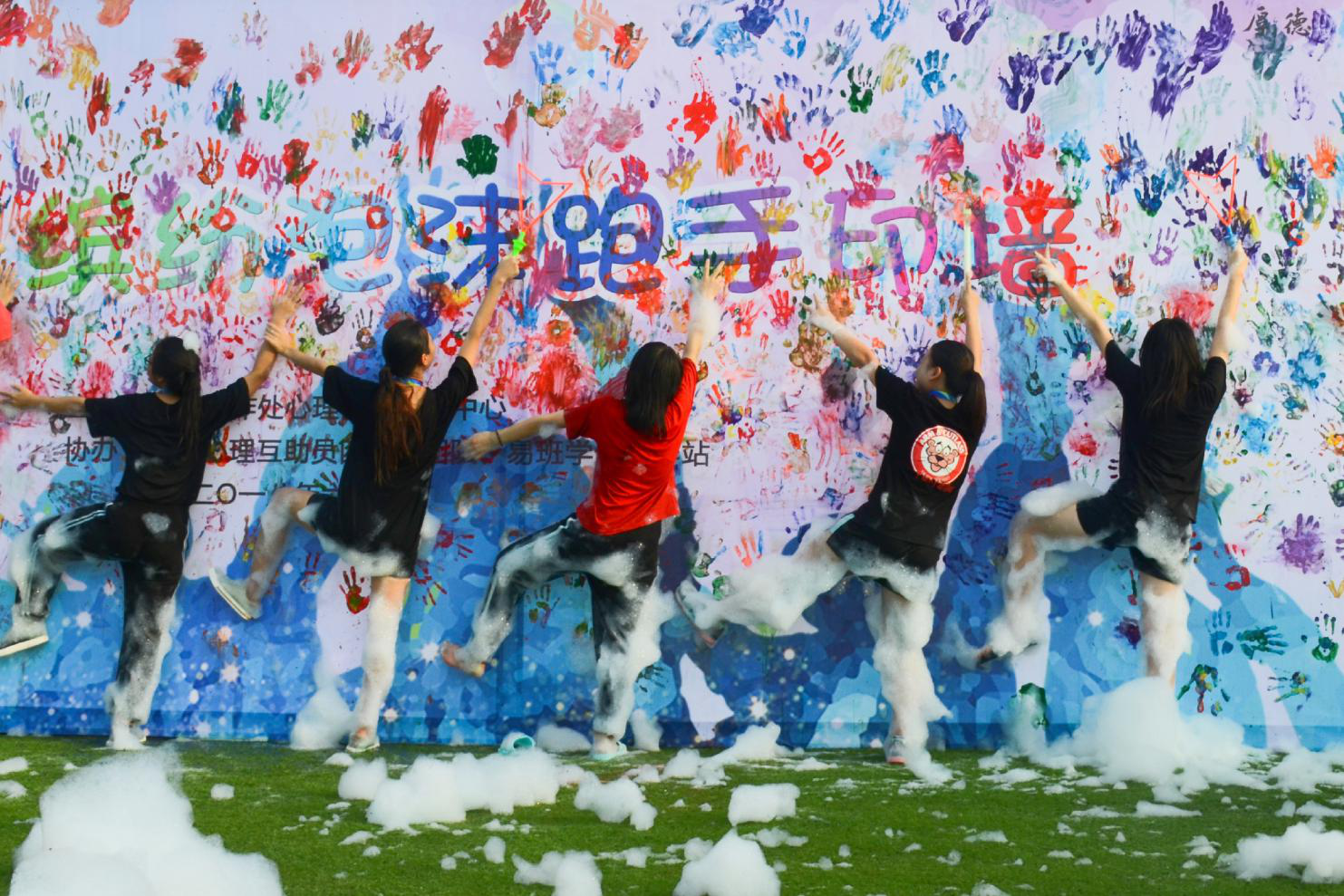 《缤纷手印墙》 拍摄者:2017级互助员蒙囿任,图片出自四叶草团队承办的2018年缤纷泡沫跑活动