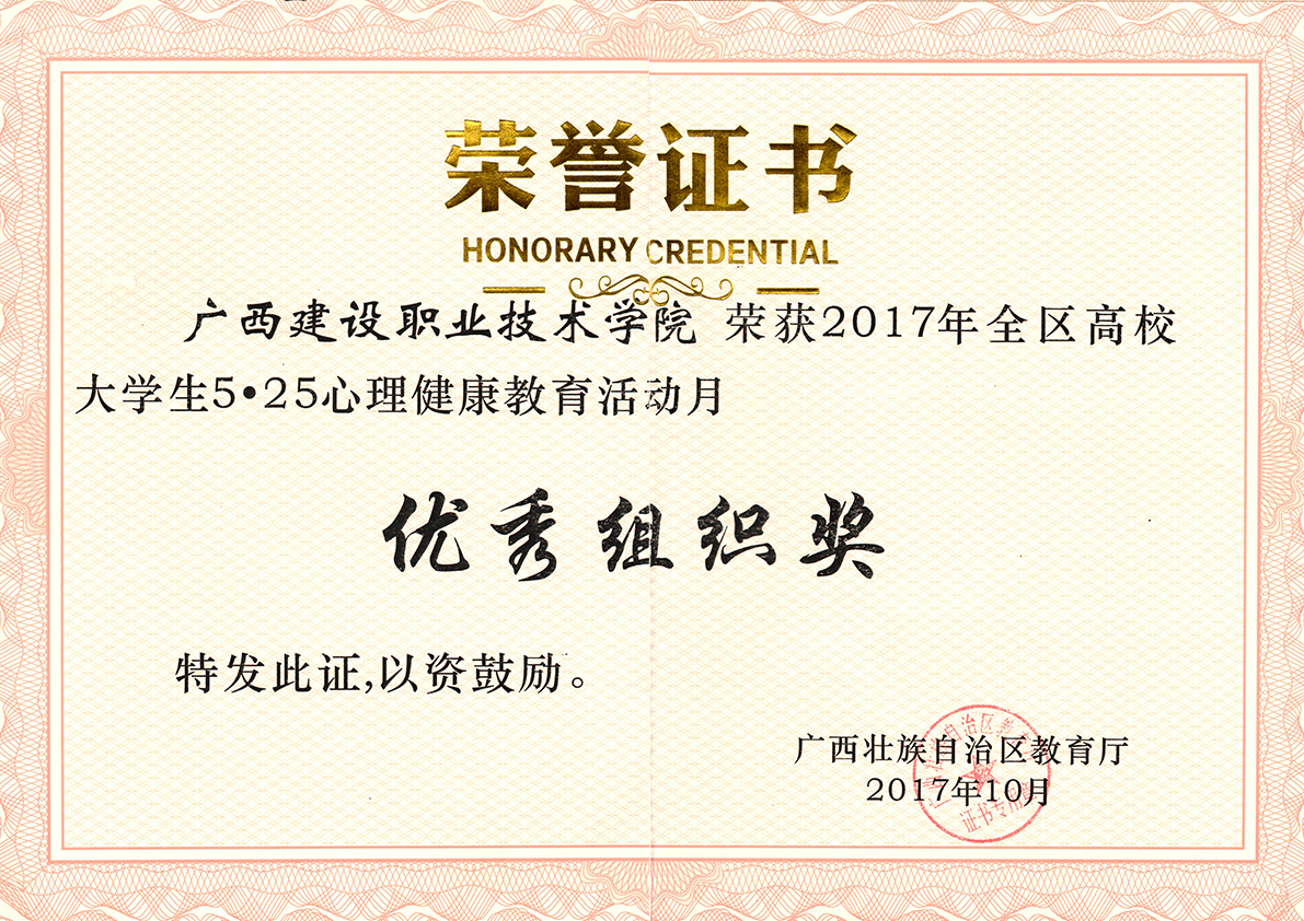 在参加广西自治区5.25大学生心理健康月活动所获得的荣誉有:
