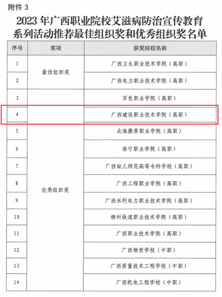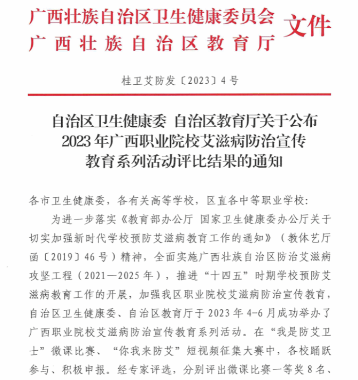 喜报!伟德国际官网在2023年广西职业院校艾滋病