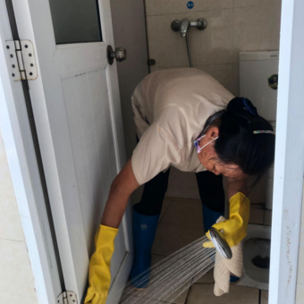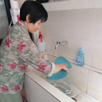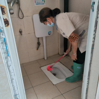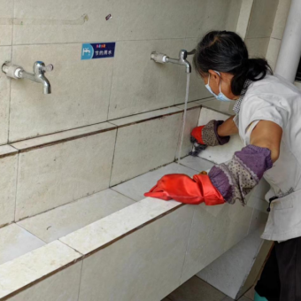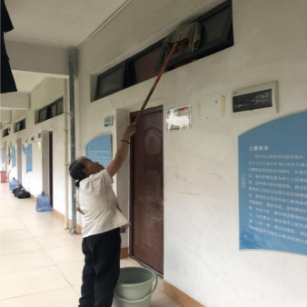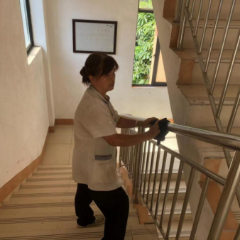 宿管阿姨们认真打扫学生公寓的每一个角落