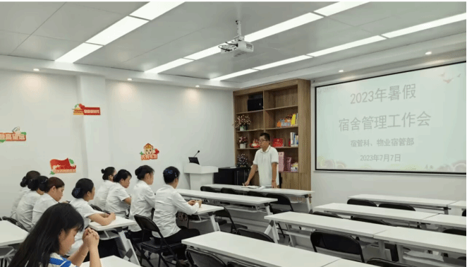 为了给学生营造安全舒适、干净整洁的住宿环境,伟德国际官网学工部宿管科于放假前召开宿舍管理工作会议,提前部署、统一思想、明确职责、分工协作,充分利用暑假窗口期对宿舍区域全面展开卫生保洁、设施巡查、隐患排查、宿舍维修等各项工作,以焕然一新的宿舍面貌迎接新学期的到来。