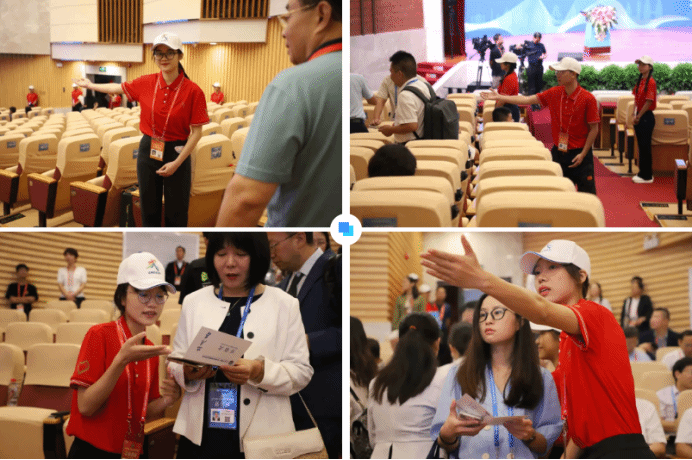 当联展暨论坛开幕式结束后,志愿者们引导各位来宾退场参观,确保会场井井有条、安全有序。当来宾们全部离场后,各位志愿者及时回收同传耳机,打扫收纳,为下一场论坛做好准备。“被需要也是成就自我价值的一部分。既帮助他人又成长自我,收获了满满的成就感和幸福感。”韦熔熔非常珍惜这次成长锻炼的机会。