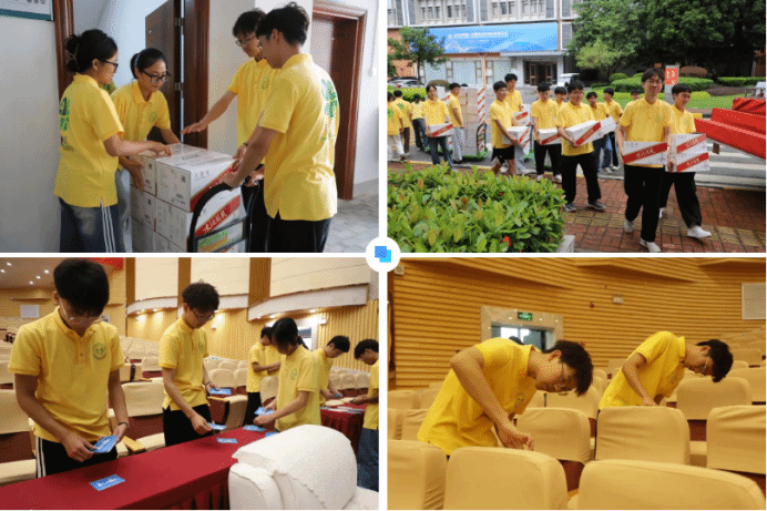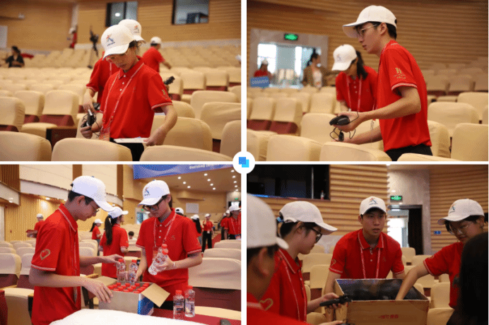 由于联展暨论坛开幕式规模大、影响力强、与会人员级别高、会议议程复杂等,对志愿服务要求提出了相应的高标准、严要求。在会前筹备工作中,志愿者们深知责任重大,在腾挪桌椅、搬运饮水、张贴座位号、摆放同传翻译、布置茶歇、议程彩排等工作中兢兢业业,认真负责。志愿者周子程说:“我们志愿者随时待命,有时早上7点前就要把桌子腾挪到位,有时又要摆放同传翻译到晚上11点,虽然累但是我们完成工作后真的很有成就感!”