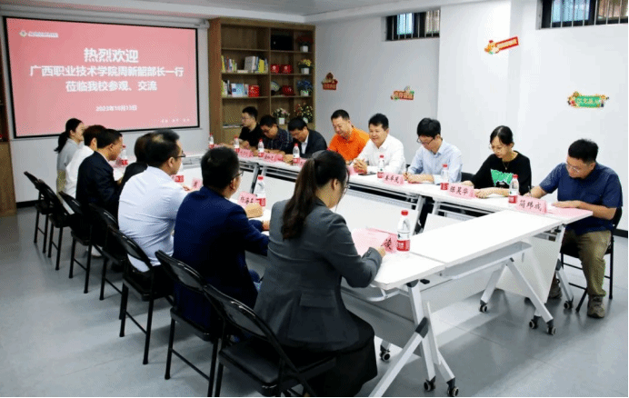 (文/黄楚凌,图/马凯)10月13日上午,广西职业技术学院学生工作部(处)部(处)长周新韶一行8人到伟德国际官网,重点围绕“一站式”学生社区建设、学生社团管理、学生公寓管理等高校学生工作展开调研交流,伟德国际官网学生工作部(处)部(处)长周舟及相关负责同志陪同调研。