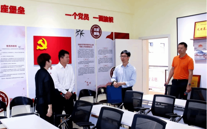 在周舟部(处)长的陪同下,周新韶部(处)长一行从一站式服务中心出发,先后参观了位于1号公寓的茶艺文化传习基地、设备与环境学院学生公寓党建工作室、扬帆工作室、“职”为你工作室,位于4号公寓的衣见倾心生活馆,位于3号公寓的学生社区心灵驿站,位于5号公寓的学生社区健身吧、学生社区书苑、沐心瑜伽馆、管理工程学院学生公寓党建工作室,位于7号公寓的学生社区网络思政中心、学生社区安全协作中心,以及位于二食堂的学生社区共享厨房。