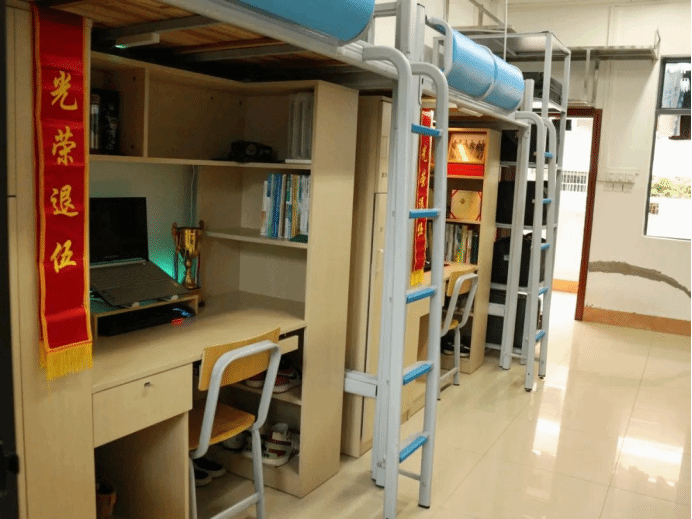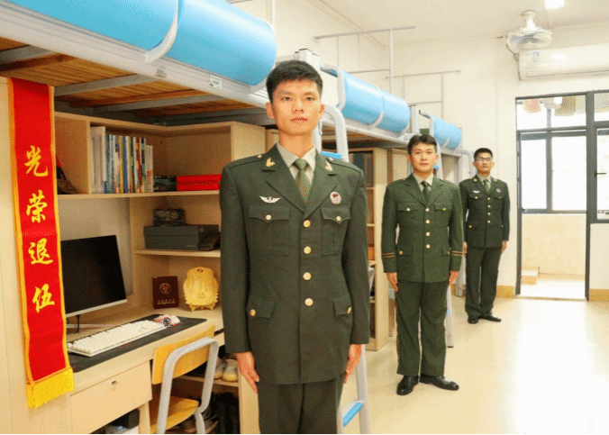 伟德国际官网大学生退役士兵公寓是学校为深入推进全民国防教育,加强国家安全教育与征兵宣传工作,发挥退役复学大学生示范引领作用,所打造的校园军旅文化高地。通过改造7号公寓,为退役复学大学生打造一个温暖的“士兵之家”,他们以准军事化的标准结合广西高校标准化学生公寓的要求与标准进行建设与管理,作为学生宿舍内务标杆,发挥示范引领作用。