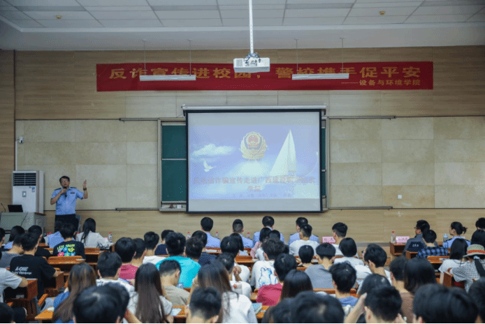(图文/毛森森)为进一步加大校园防诈宣传力度,增强学生防诈意识,近日,学生社区安全协作中心、设备与环境学院学生公寓党建工作室联合开展“反诈宣传进校园,警校携手促平安”反诈主题安全教育活动,南宁市公安局反诈支队及地铁分局西乡塘站派出所多名反诈宣传教官到伟德国际官网深入学生群体,开展校园反诈宣传教育活动,筑牢校园反诈“安全墙”。设备与环境学院党总支书记侯文淑、党委学生工作部宿管科科长陆洪先到场参加。