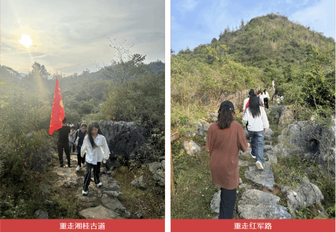 80多年前,湘桂古道发生了一场惊天地的湘江战役,无数红军烈士的鲜血染红了古道,他们用生命铺就了革命胜利的通途。10月28日下午,研学团沿着先烈们的足迹重走湘桂古道,沿着当年红军将士浴血奋战的足迹,实地感受当年红军烈士长征的艰辛和艰险的战斗历程。边走边学边思边悟,此次重走湘桂古道,对同学们而言是一次与革命先辈“对话”的机会,更是一次精神的洗礼。