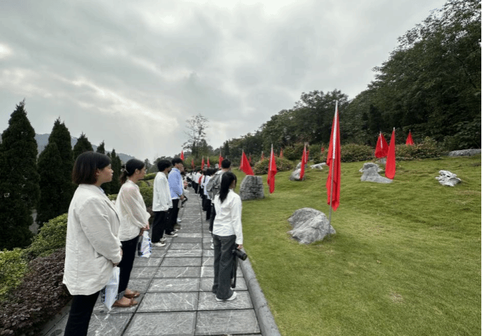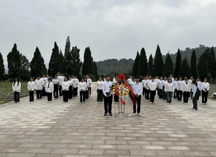 一草一木一英魂、一山一石一丰碑。参观结束后,研学团步行到湘江战役纪念林,追寻先辈足迹,追忆湘江战役,传承红色基因。在庄严肃穆的湘江战役纪念碑林广场雕像前,同学们怀着深切的缅怀之情瞻仰祭奠,全体成员肃立默哀、鞠躬、致敬,向湘江战役红军烈士敬献花篮。最后,研学团步行到湘江战役纪念园烈士英灵主安放区凭吊瞻仰,追思缅怀。