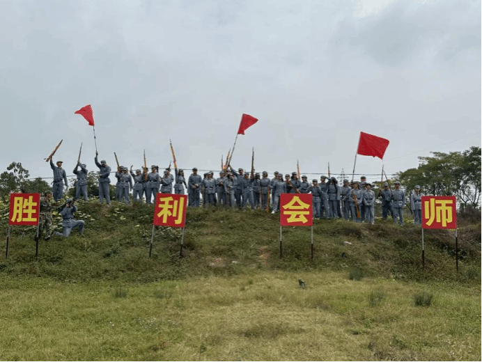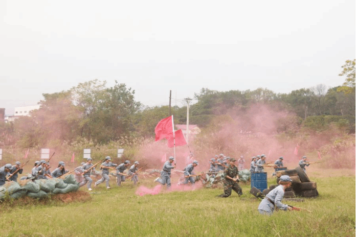 10月28日上午,研学团赴全州县绍水镇红军营军事拓展基地开展工农大练兵、军事装备使用模拟等情景教学,模拟演练强渡湘江、碉堡防敌的战斗场景。同学们从模拟演练中体会中国共产党人和红军将士的英雄气概和革命精神,切实补足精神之钙。