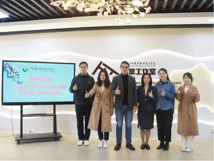 双方在海棠工作室进行座谈交流。杨海基副部长,管理工程学院党总支副书记、海棠工作室主持人郭海棠对重庆水利电力职业技术学院“红色青年”工作室一行的到来表示热烈欢迎。