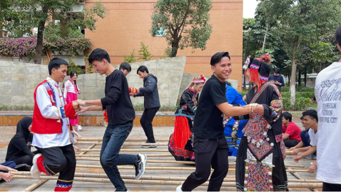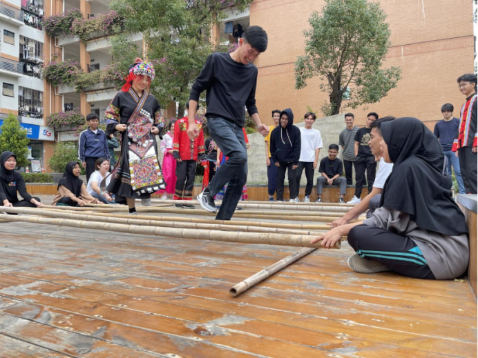 同跳竹竿舞 共架友谊桥——“共话民传”微课堂