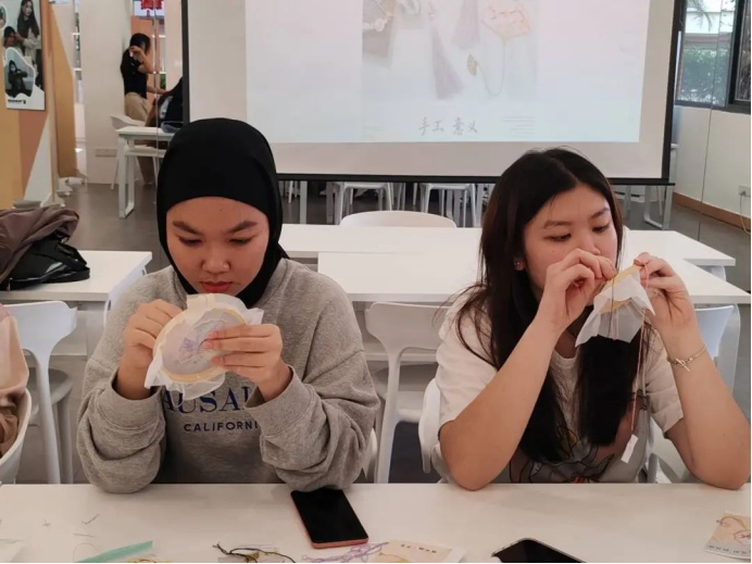 在“衣见倾心”生活馆,留学生们第一次学习刺绣技艺,在欢声笑语中,努力、认真地绣制属于自己独一无二的作品,把自己的心意缝入了针脚之中。经过一个下午的创作,大家拿着自己的作品,喜悦的心情溢于言表。一名留学生激动地说:“我很喜欢中国的传统文化,这次的刺绣活动让我更加深入地了解了中国的丝绸文化和刺绣艺术,我希望以后还能有更多机会参加学校的活动。”