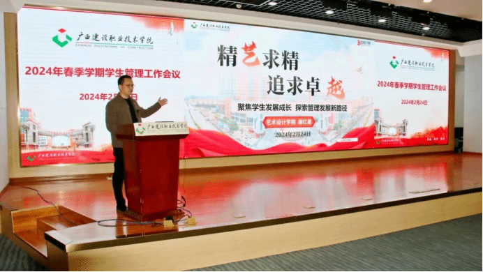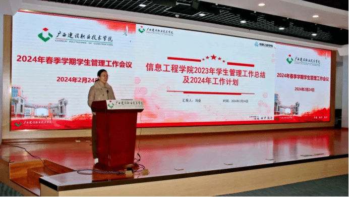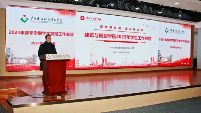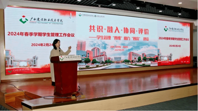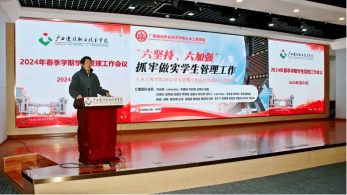 (文/黄楚凌 图/马凯)2月24日,龙年新学期第一天,伟德国际官网2024年春季学期学生管理工作会议在四号教学楼二楼会议室召开,伍耿清副校长出席会议并讲话。学工部、团委全体人员,各二级学院学管领导、团总支书记、学管干事,全体专职辅导员及班主任代表参加会议。