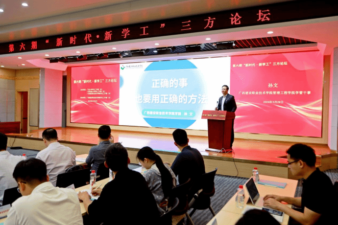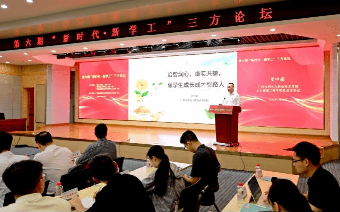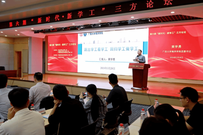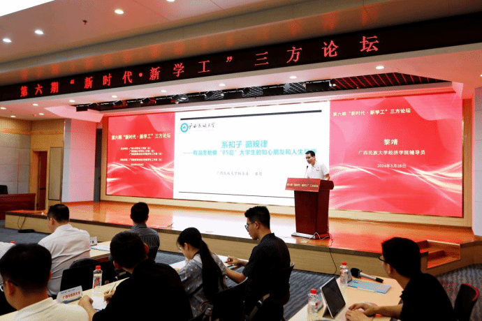 (文/刘晗蓓、图/程舒阳、余骦、马凯)3月28日上午,第六期“新时代·新学工”三方论坛在伟德国际官网四教二楼报告厅举行。广西大学学生工作部(处)部(处)长黄必春、广西民族大学学生工作部(处)部(处)长钟华、广西中医药大学学生工作部(处)部(处)长叶勇玲、广西水利电力职业技术学院学生工作部(处)部(处)长李晓红、伟德国际官网学生工作部(处)部(处)长周舟出席论坛。五所高校学工代表和辅导员130余人参加本次论坛。