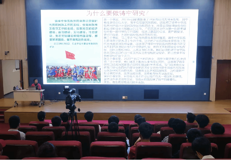 谭洁教授首先以“铸牢中华民族共同体意识”为主题,深入浅出地讲解了铸牢中华民族共同体意识的深刻内涵、重大意义和实践要求。紧接着,谭教授为师生们详细解读了铸牢中华民族共同体意识的法治路径。她强调,通过变通立法,我们能更好地保护和传承民族文化,促进民族间的交流与融合,从而增强中华民族的凝聚力。最后,谭教授勉励同学们要厚植爱国情怀,学习我国悠久的历史文化、了解国家关于民族团结的政策法规、积极参与社会实践,为民族团结进步和中华民族伟大复兴贡献力量。