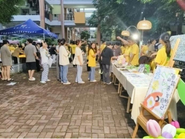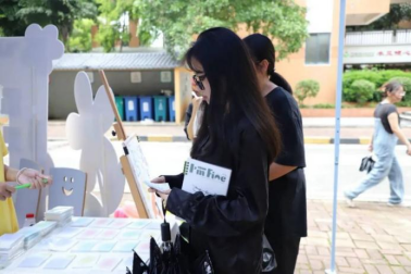 25日晚,风雨阻挡不了热爱,同学们排起“长龙”,在互助员们的指引下将自己“爱的箴言”粘贴在海报展板上,并完成信息登记领取自己心仪的小礼品。公仔小夜灯亮着柔和的光,熊猫书签可爱又实用,还有名画艺术钥匙扣、四叶草玩偶挂饰都让同学们爱不释手……